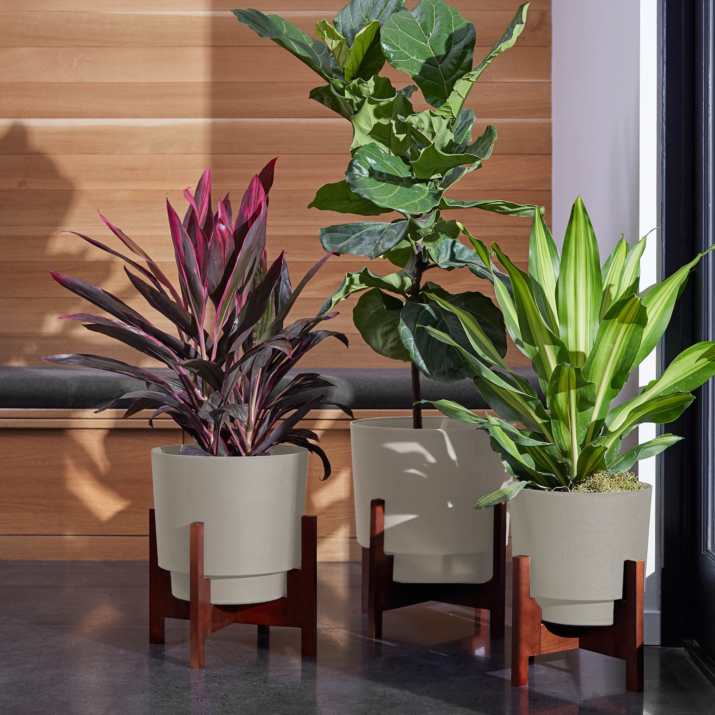 Bloem Hopson Planter W Wood Stand 12 X 16 Plastic Round Black Walmart Com